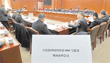 昨日,市政協(xié)四屆四次會議一號提案現(xiàn)場辦理會現(xiàn)場。 記者張路橋攝